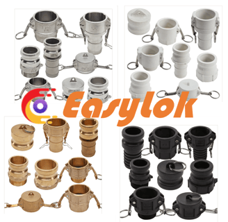 Self-locking: Self-locking camlocks meet the specifications for quick disconnect couplers. The aluminum cam locks have brass locking cam arms. Pins, rings and the locking plate are 300 series stainless steel.